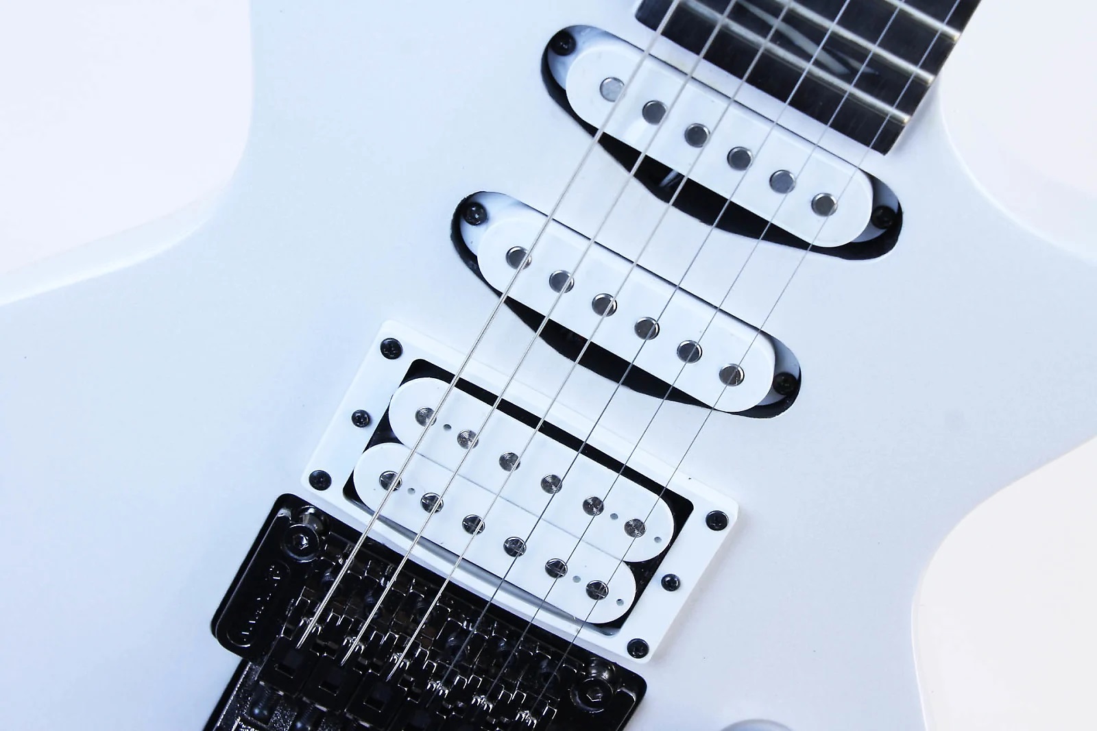 Характеристики: Kramer Assault 211 FR Pearl White (KA211PWBF1) В середине 1970-х годов, когда появились Kramer Guitars, они производили исключительно гитары с алюминиевыми грифами. В 1982 году Kramer заключил эксклюзивную дистрибьюторскую сделку с Floyd Rose. Гитары Kramer стали дополнительно оснащаться, колками Schaller и звукоснимателями Seymour Duncan. С одобрения Эдди Ван Халена Kramer стал самой продаваемой гитарой в мире в середине 80-х. Компания Gibson Guitar приобрела уважаемую марку Kramer, переиздала многие исторические гитары Kramer и представила также инновации современного дизайна. Электрогитара Kramer Assault 211 FR имеет single-cutaway корпус из красного дерева. Вклеенный гриф из красного дерева с тонким профилем делает игру на гитаре более удобной. На накладке грифа из черного дерева с 24 ладами - ладовые отметки в форме шипа. Утопленная в корпус лицензионная double-locking Floyd Rose система не будет мешать вам независимо от того, насколько агрессивно вы играете. Великолепный звук выдают Kramer Assault 211's Alnico V хамбакер в бридже и два сингловых датчика в середине и в неке. Элементы управления включают в себя общий уровень громкости, две ручки тона и 5-позиционный переключатель. СПЕЦИФИКАЦИЯ : Цвет: Pearl White Материал корпуса: Красное дерево Материал грифа: Красное дерево Крепление грифа: Вклеенный Накладка грифа: Черное дерево Радиус накладки грифа: 14" (355.6 мм) Лады: 24 Мензура: 25.50" (647.70 мм) Ширина верхнего порожка: 1,65″ (41.9 мм) Звукосниматели: хамбакер Alnico V и 2 сингловых датчика в середине и в неке Бридж: Floyd Rose™ Регуляторы: 5-позиционный переключатель, 1 ручка громкости, 2 ручки тембра Фурнитура: Хромированная Колки: Литые