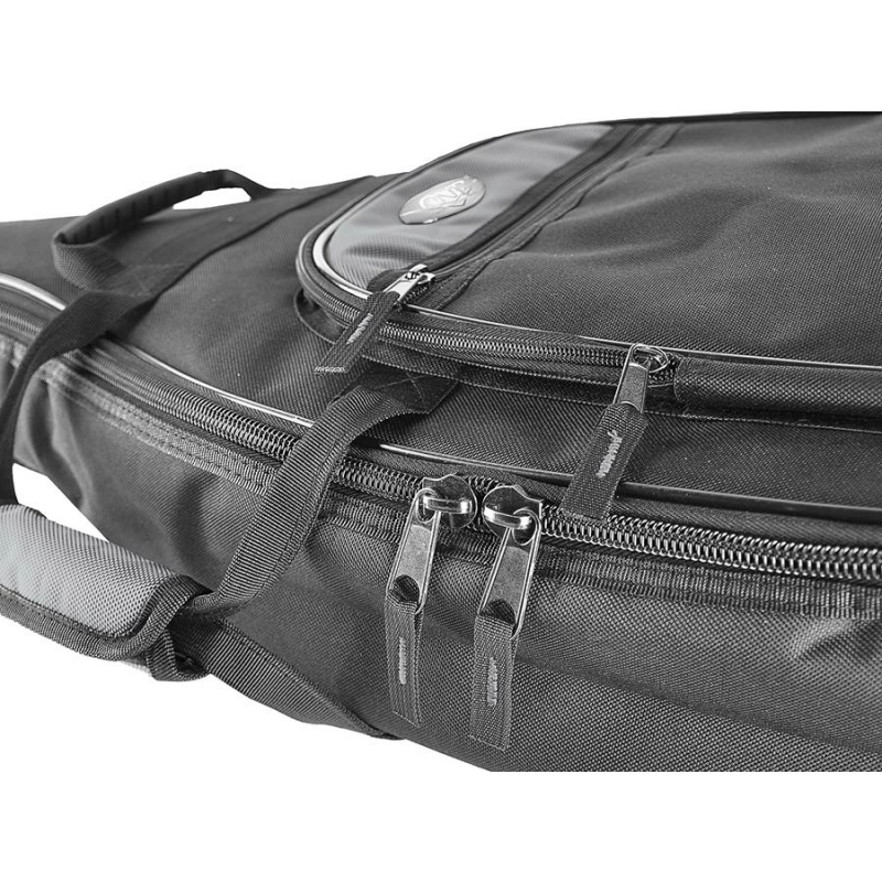 Характеристики: Высококачественный чехол для бас гитары . Изготовлен из прочного и водонепроницаемого нейлона 600D. Чехол обеспечивает отличную защиту от атмосферных воздействий, пыли, грязи и благодаря внутреннему утеплителю 10 мм - он является основной защитой от механических повреждений и от температурных перепадов. Помимо основного пространства для хранения самой гитары, имеются также дополнительные карманы для аксессуаров размером 400 x 300 x 20 мм и 400 x 300 x 5 мм. А так же -  качественные молнии, пара удобных мягких плечевых ремней , а также боковые и передние ремни. Цвет: черный.Размеры:Высота: 122 смНижняя часть: 40 смСредняя часть: 34 смВерхняя часть (для грифа): 16 смГлубина: 6 см