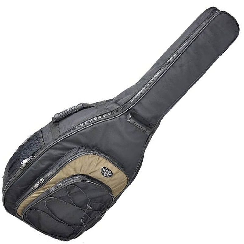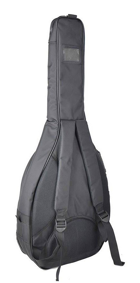 Характеристики: Высококачественный чехол для акустической гитары . Изготовлен из прочного и водонепроницаемого нейлона 600D + 1600D. Чехол обеспечивает еще более отличную защиту от атмосферных воздействий, пыли, грязи и благодаря внутреннему утеплителю 15 мм - он является основной защитой от механических повреждений и от температурных перепадов. Помимо основного пространства для хранения самой гитары, имеются также дополнительные два кармана на молнии для аксессуаров + внешний карман-сетка. А так же -  качественные молнии, пара удобных мягких плечевых ремней , а также боковые и передние ремни. Цвет: черный.Размеры:Высота: 104 смНижняя часть: 41 смСредняя часть: 34 смВерхняя часть (для грифа): 13 смГлубина: 13 см