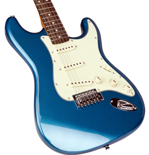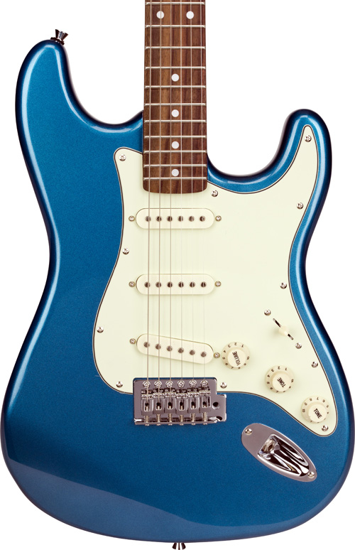 Характеристики: Мензура: 648 мм Корпус: Цельная липа Гриф: Канадский клен Усиление грифа: Палисандр Анкер: 2 Way Truss Rod Крепление грифа: На болтах Накладка грифа: Палисандр Лады: Никель, 21 шт Ладовые отметки: Dots Inlayed, White Колки: Цельно-литые с хромированным покрытием Верхний порожек: искусственная кость Ширина порожка: 42мм Бридж: Хромовый Струны: D'Addario Звукосниматели: 3 сингла Конфигурация звукоснимателей: сингл-сингл-сингл Регуляторы: 1 громкость, 1 тон,  3-х позиционный переключатель Панель: белая Цвет: Lake Pacific Blue Покрытие: глянцевое В комплекте: чехол EB400/M