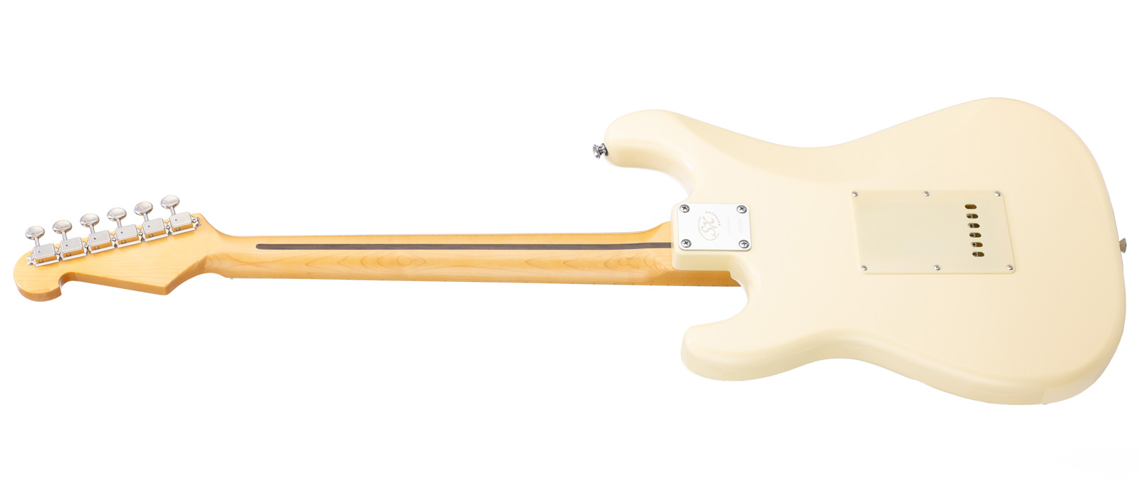 Характеристики: Мензура: 648 ммКорпус: Цельная липаГриф: Канадский кленУсиление грифа: ПалисандрАнкер: 2 Way Truss RodКрепление грифа: На болтахНакладка грифа: ПалисандрЛады: Никель, 21 штЛадовые отметки: Dots Inlayed, BlackКолки: Цельно-литые с хромированным покрытиемВерхний порожек: искусственная костьШирина порожка: 42ммБридж: ХромовыйСтруны: D'AddarioЗвукосниматели: хамбакер + сингл + хамбакерКонфигурация звукоснимателей: хамбакер-сингл-хамбакерРегуляторы: 1 громкость, 2 тон,  5-ти позиционный переключательПанель: белаяЦвет: БелыйПокрытие: глянцевое В комплекте: чехол EB400/M