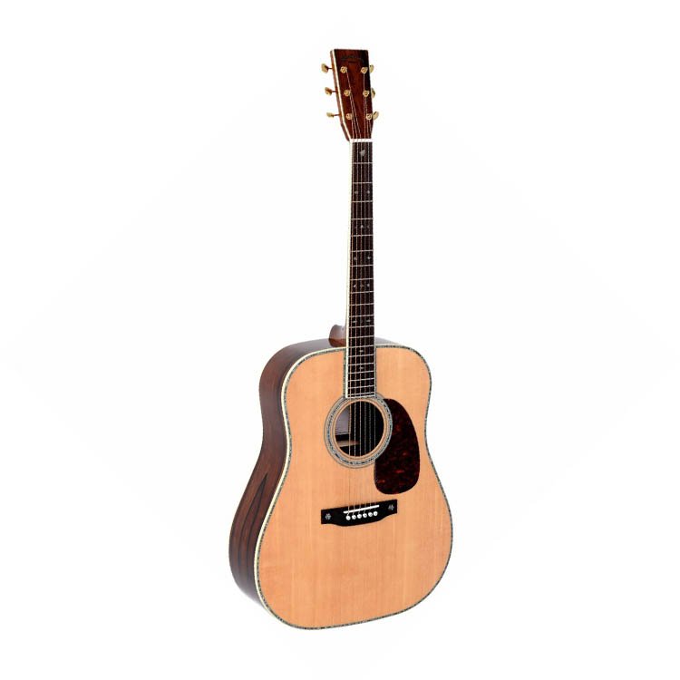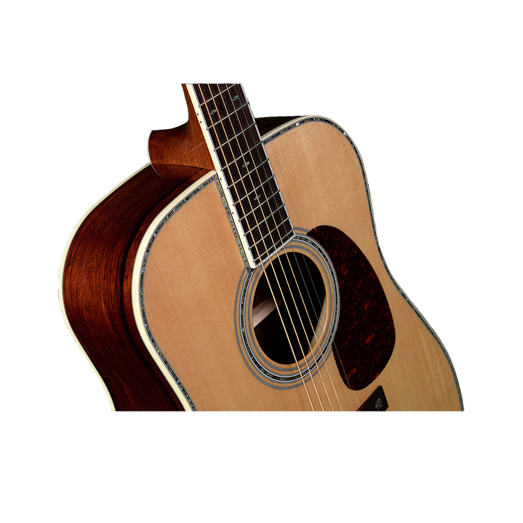 Верхня дека виготовляється з цільної ситхінської ялини. Така деревина є м'якою, проте неймовірно пружною. Саме тому, вона чудово резонує на середніх частотах та придає звучанню м'який, теплий тембр. Задня дека та обичайки виготовляються з мадагаскарського палісандра. Гриф зроблено з червоного дерева , а накладка грифа з індійського палісандра. Довжина мензури