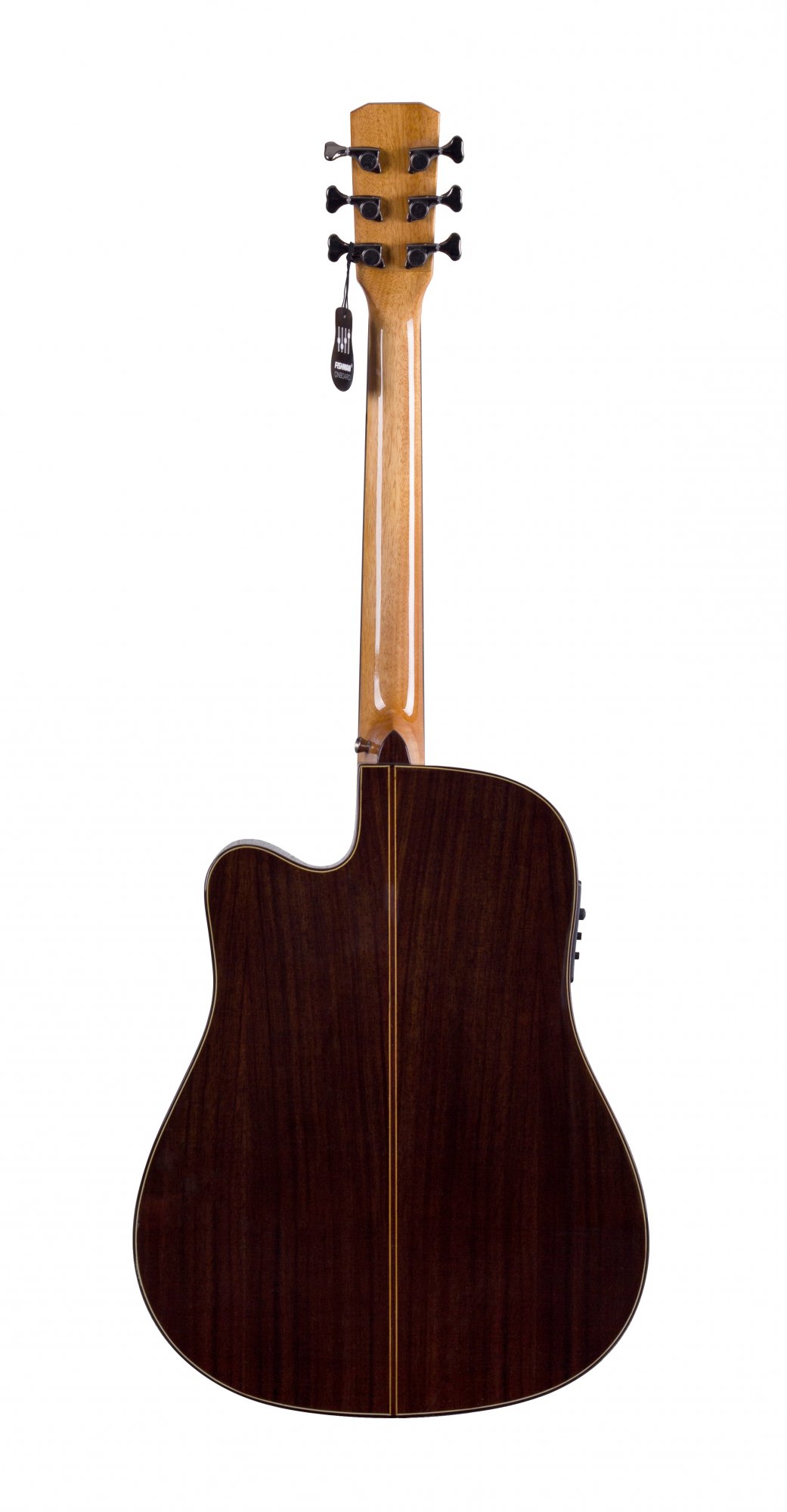 Prima MAG215cQ - електроакустична гітара з 3-х смуговим еквалайзером форми Dreadnought з вирізом. Корпус виготовлений з палісандра, що у поєднанні з глибоким корпусом пропонують чітку атаку з зібраними низькими частотами. Виріз на корпусі змінює характер резонування звуку, робить виразнішими середній та високий спектри частот