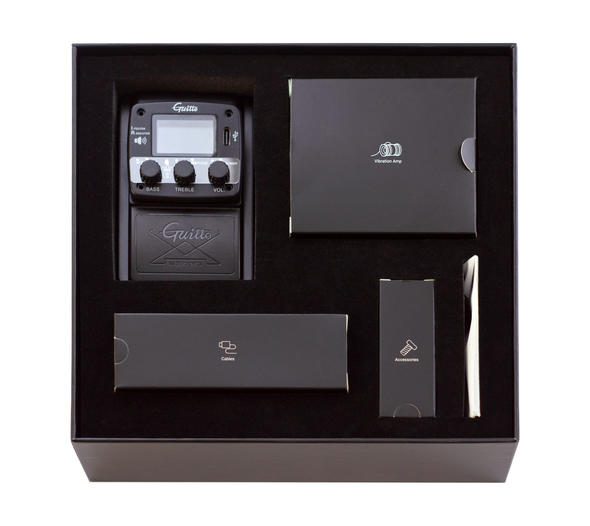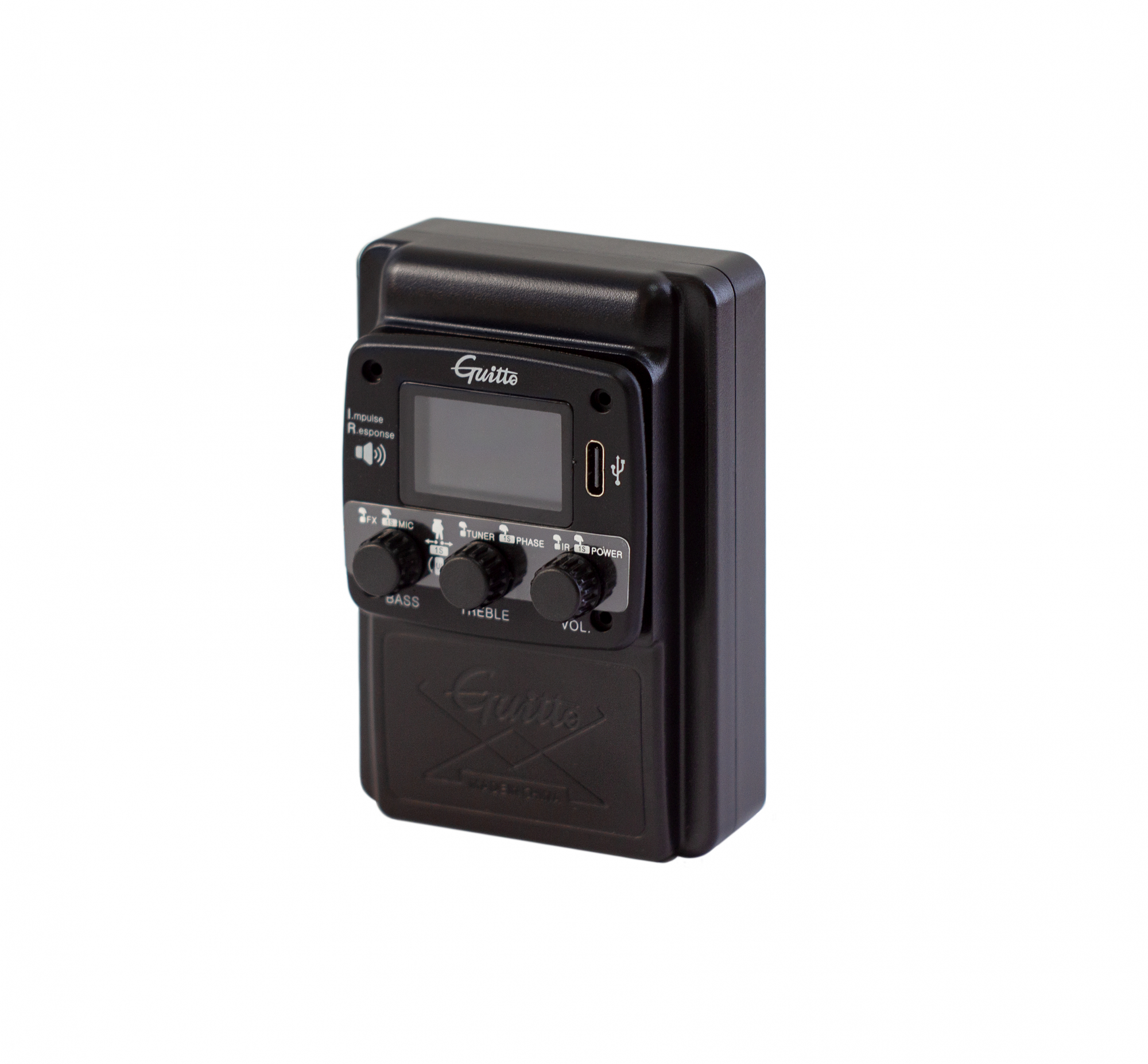 Guitto GGP-04 – трансакустичний звукознімач з вбудованими цифровими ефектами (Reverb, Chorus, Delay). Пристрій змішує знятий сигнал з ефектами та програє отриманий звук прямо всередині деки. Це дозволить збагатити звук Вашої гітари навіть без підключення до підсилювача. Трансакустичний звукознімач Guitto GGP-04 підходить для класичних та акустичних гітар.