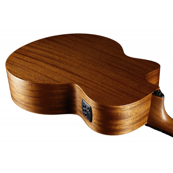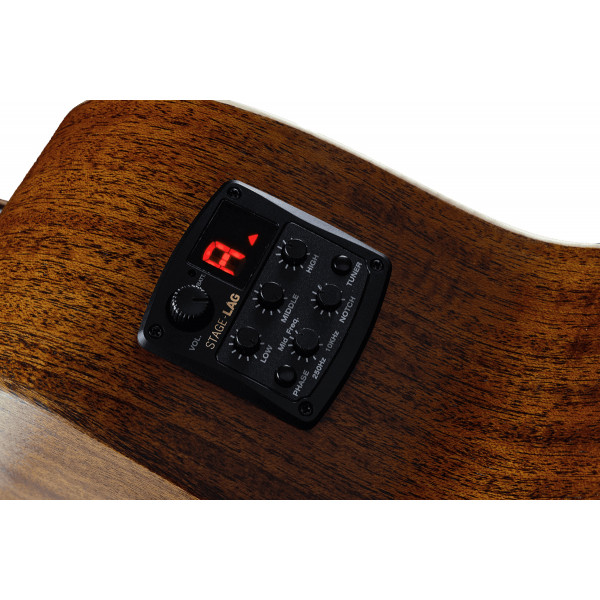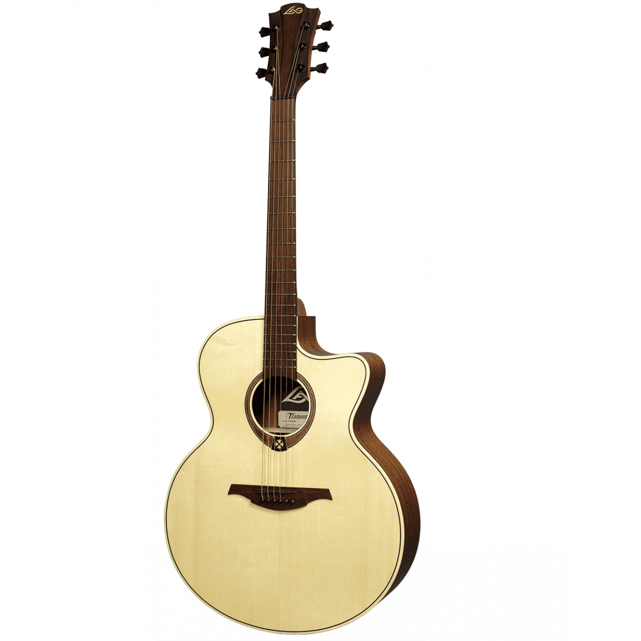 LAG Tramontane T177JCE – это 25,6-дюймовый Jumbo cutaway с цельным топом из энгельманской ели, ламинированной спинкой / грифом из махагона (тропического дерева, принадлежащего к семейству красного дерева, с текстурой, похожей на гондурасское дерево, приглушенными низкими и высокими частотами) и грифом из коричневого BrankoWood (искусственная форма палисандра).