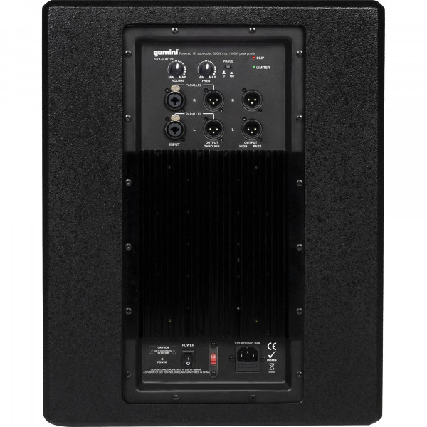 Активный сабвуфер Gemini GVX-SUB12P обладает достаточной мощностью, чтобы все присутствующие в комнате почувствовали ее. Встроенный усилитель выдает 300 Вт RMS (1200 Вт в пике) на 12-дюймовый динамик, обеспечивая чистый, мощный и приятный звук сильных басов. Благодаря такой мощности GVX-SUB12P в равной степени идеально подходит как для концертирующих диджеев, так и для стационарных инсталляций, особенно в клубах, барах и концертных залах. Кроме того, эргономичные ручки и легкая конструкция из МДФ делают GVX-SUB12P компактным и портативным вариантом для мобильных диджеев. Для обеспечения исключительной надежности усилитель сабвуфера имеет тепловую защиту, защиту от короткого замыкания и постоянного тока, а также схему лимитера. Его электронный кроссовер имеет регулируемую частоту (55 Гц ~ 200 Гц), а металлическая решетка, прочная конструкция и водостойкая краска гарантируют долговечность даже в самых сложных условиях гастролей или инсталляций. На задней панели сабвуфера расположены балансные комбо-входы XLR/¼" (6,35 мм), а также балансные выходы XLR Full Range и High Pass. Регуляторы громкости и частоты, а также переключатель фазы позволяют управлять уровнем и звучанием.