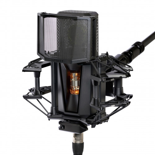Полностью регулируемое амортизаторное крепление эффективно поглощает структурный шум, а акустически прозрачный защитный экран устраняет взрывные волны. Он с помощью магнитов крепится непосредственно к амортизатору, поэтому шаткие поп-фильтры на «гусиной шее» остались в прошлом. Абсолютно каждая деталь дизайна показывает, что PURE TUBE был разработан для профессиональной записи вокала.
