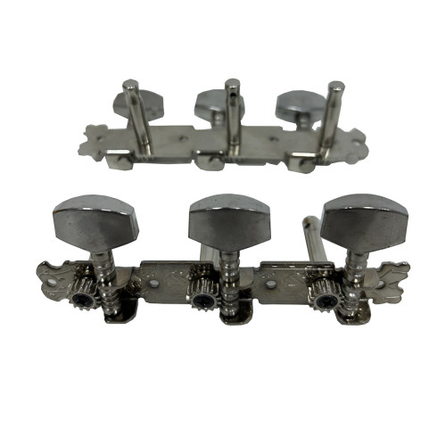 Колки на планке для 6-струнной акустической или классической гитары представляют собой важную составную часть гитары, ответственную за передачу звуковых колебаний от струн к гитарному корпусу. Эти колки изготовлены из металла и хромированы, что не только придает им эстетический вид, но и обеспечивает защиту от коррозии, повышая продолжительность их использования. Металлические хромированные колки очень популярны среди гитаристов разного уровня сноровки, поскольку они могут удовлетворить потребности как начинающих, так и опытных музыкантов.