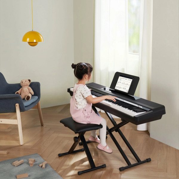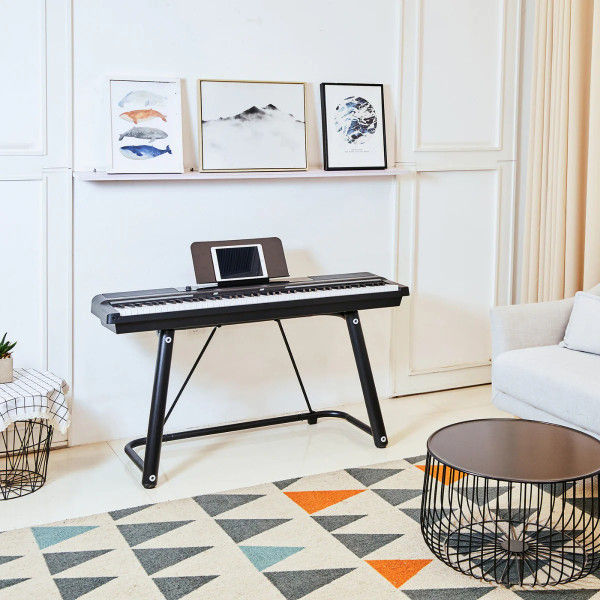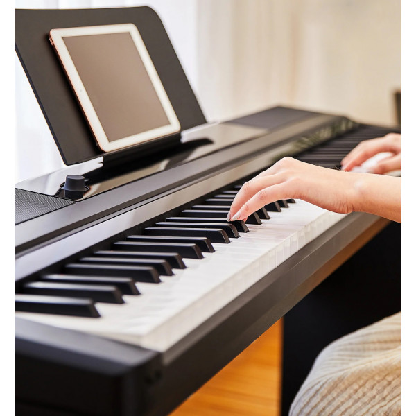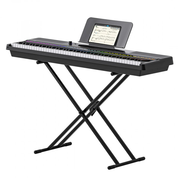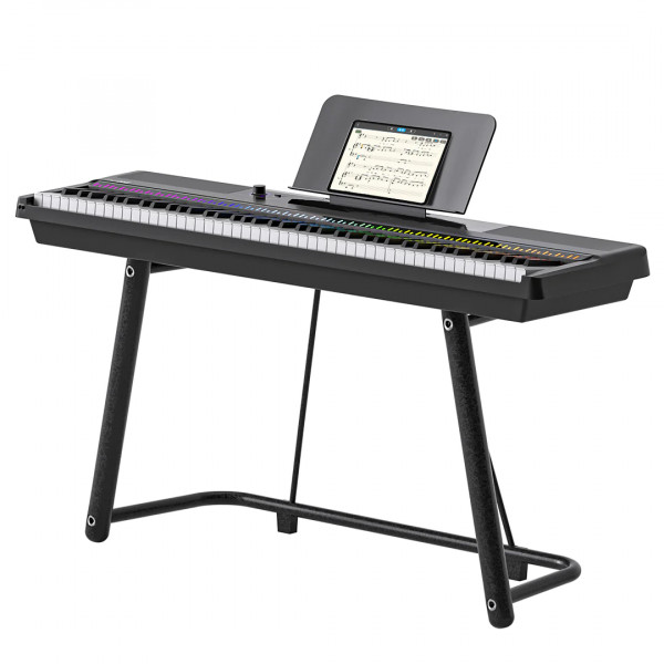 The ONE NEX – цифровое пианино высокого класса, которое оснащено полноразмерными клавишами с молоточковым механизмом, что обеспечивает подлинные ощущения от игры. The ONE NEX имеет 88 взвешенных стандартных клавиш, размер которых соответствует размеру клавиш стандартного акустического пианино. Молоточковая механика обеспечивает наиболее реалистичные ощущения, а функция сенсорного отклика позволяет добиться более убедительного и динамичного звучания. Благодаря встроенным 88 разноцветным светодиодным лампочкам, а также 4000+ нотам, 100 обучающим видео и веселым играм в бесплатном приложении, это цифровое пианино позволит Вам начать играть за считанные минуты. Это больше, чем просто пианино, это также и учитель игры на фортепиано.