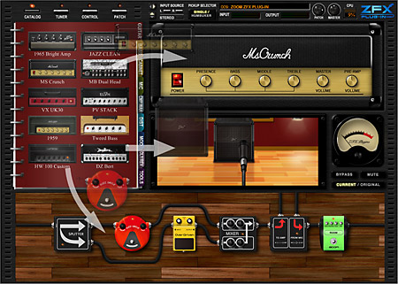 В отличии от «обычных» процессоров эффектов, моделирование необходимого звучания и его редактирование при использовании ZOOM C5.1T происходит непосредственно в ПК, при помощи оригинального программного обеспечения ZFX Plug-In, полностью совместимого со стандартом Cubase VST. Портастудия ZOOM C5.1T позволяет контролировать некоторые параметры звука с помощью встроенной педали. Наряду с такими «обычными», как уровень wah-эффекта, расстройки (pitch) или уровень громкости, это могут быть степень смешения чистого и обработанного с помощью reverb/delay сигналов, уровень модуляции и т. д.
