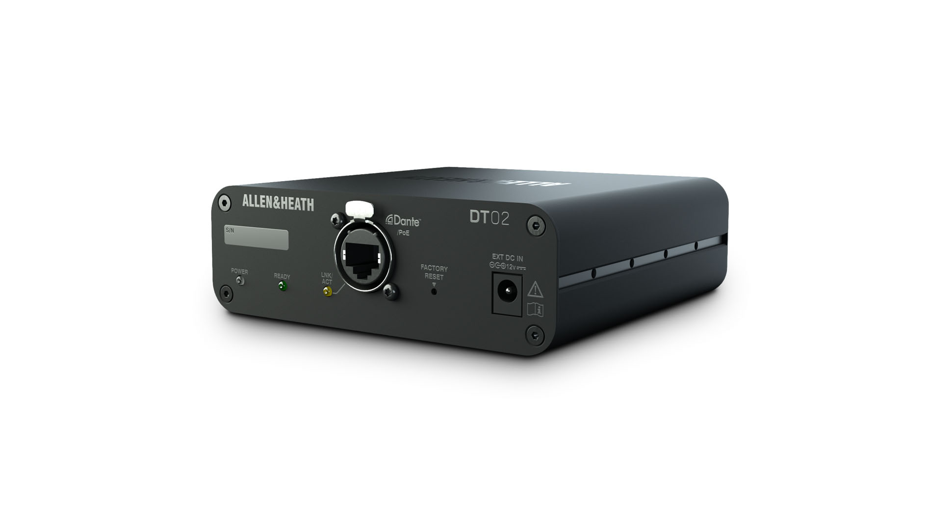 DT02 — это недорогой, компактный интерфейс Dante 48 кГц/96 кГц, обеспечивающий 2 выхода XLR там, где они вам нужны. DT02 идеально подходит для широкого спектра стационарных установок и проката AV/портативных приложений. Его можно использовать с любым микшером Allen & Heath, оснащенным Dante интерфейсом, или системой AHM, а также с системами Dante сторонних производителей.
