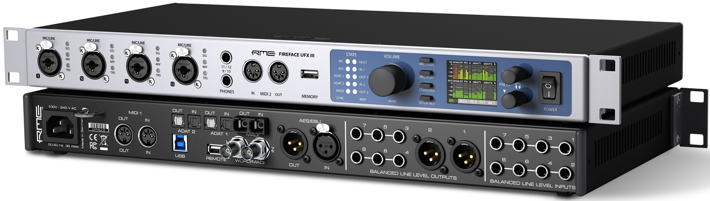 Fireface UFX III является не только технически усовершенствованным, но и эргономически разработанным, обеспечивая пользователю высокий уровень контроля над аудио-потоками. На передней панели расположены четыре высокоэффективных входа Neutrik в комбинированном формате XLR/TRS для сигналов микрофона и инструментов (например, электрогитар). Fireface UFX III может быть интегрирован в любую аудио сеть с помощью соединений ADAT, AES и SPDIF, а технология встроенной записи DURec (прямая запись USB) позволяет записывать непосредственно на USB-накопитель без использования компьютера.
