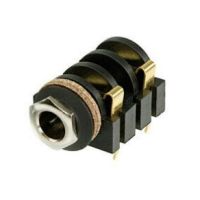 1/4" (6,3 мм) панельний моно джек "мама" (роз'єм), пластмасовий корпус з гайкою і шайбою, для горизонтального монтажу на друкованій платі, з хромованою гільзою-гайкою. Відстань до друкованої плати: 8,2 мм, 2-полюсний.