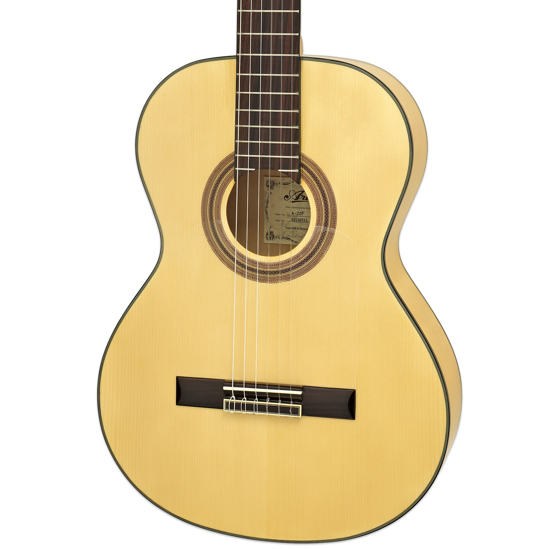 A-20F — гитара для фламенко с верхней декой из массива ели, нижней и нижней декой из липы. Гладкая глянцевая отделка естественного цвета с накладкой сверху и элегантные золотые колки — гитара которая заслуживающий внимания.