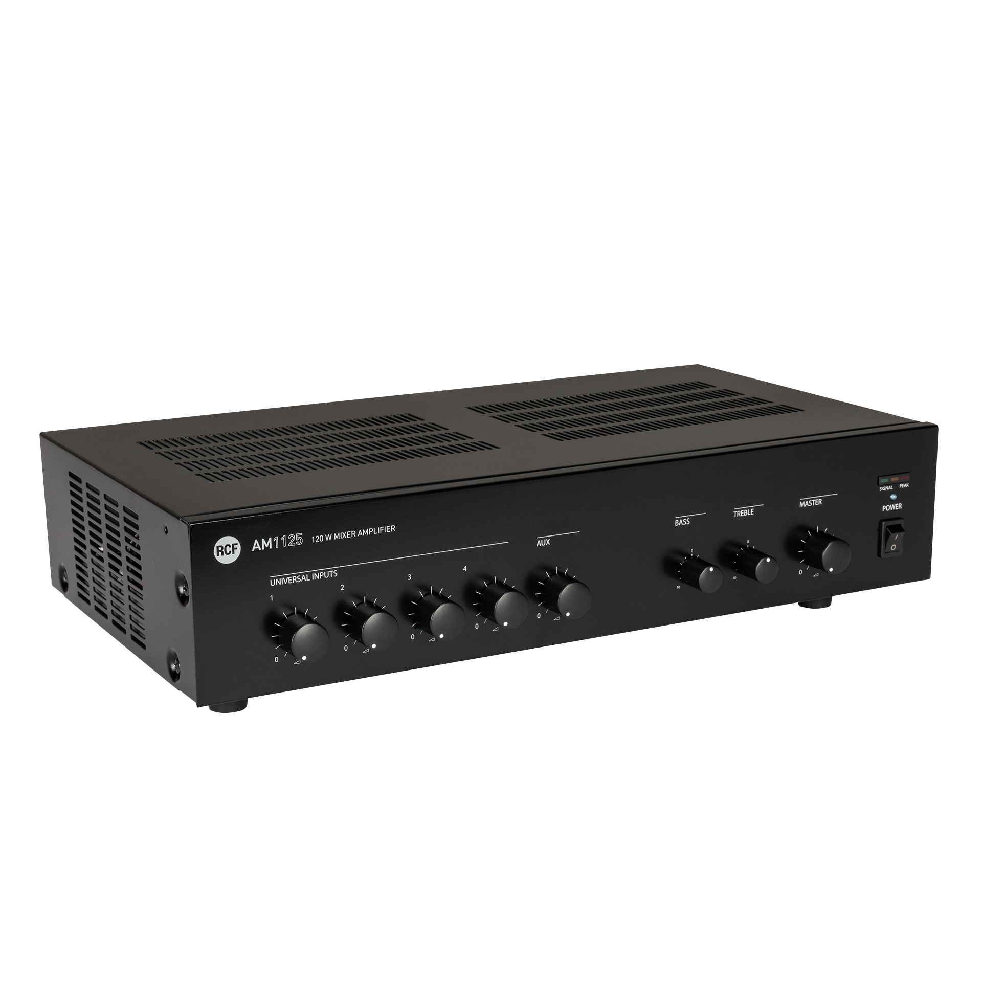 RCF AM1125 усилитель 120 Вт, 100В / 70В / 4 Ом, 4 входа микр. / Лин. (1 с приоритетом) + 1 аукс