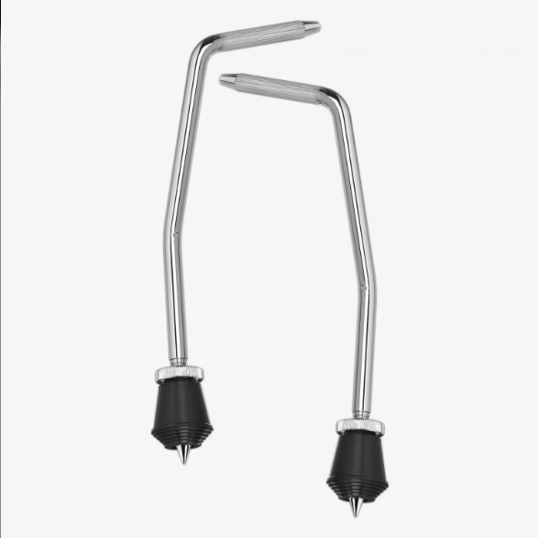 Ножки для бас барабана винтажного типа. Диаметр: 9,5 мм, с резьбовой регулируемой шпорой и резиновым каблуком. Длина: 10 дюймов.