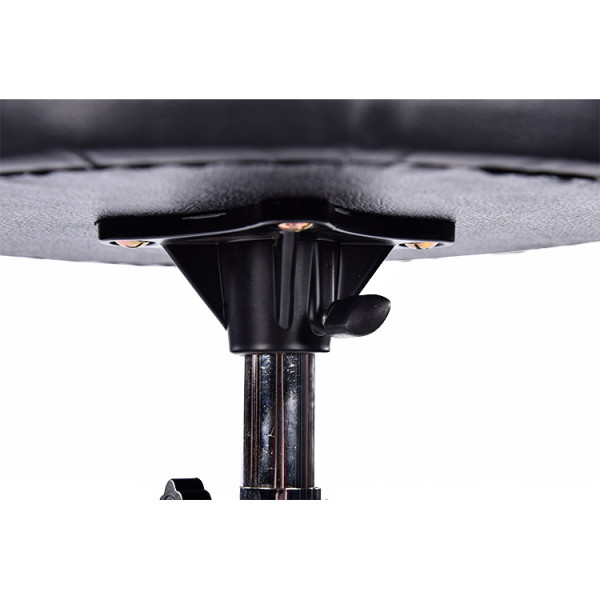 Универсальный стул для музыканта с круглым сиденьем и регулировкой высоты от 38 см до 55 см. Цвет сидения – черный. Двойные подтянутые ножки (38 см) предоставляют отличную прочность и большую устойчивость. На ножках есть резиновые наконечники для того, чтобы стул не скользил.