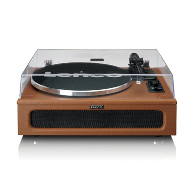 Спереду над великою решіткою динаміка розташований ретро-лейбл - Lenco. За ним знаходяться чотири вбудованих динаміка — два по 15 Вт і два по 10 Вт.