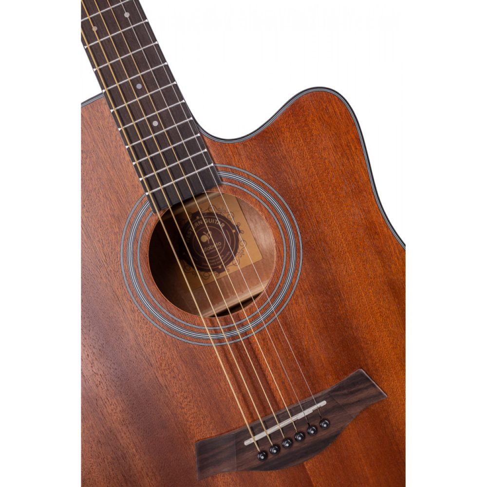Alfabeto SAPELE WS41 ST - это шестиструнная акустическая гитара в корпусе дредноут. Эта модель имеет элегантный внешний вид и отличный звук благодаря древесине сапеле, с которой и изготовлен корпус гитары. Гриф сделан из красного дерева и имеет качественную накладку из синтетического дерева. Верхний и нижний порожки сделаны из АБС-пластика. Окантовка корпуса также выполнена из АБС-пластика. Гриф имеет инкрустацию в виде точек. Модель представлена в натуральном цвете с атласным покрытием.