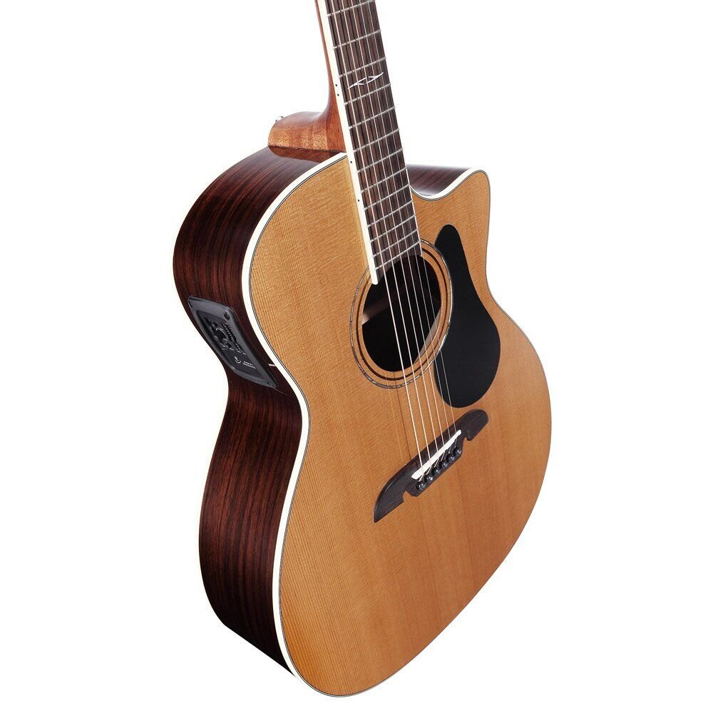 Alvarez AG75WCE гитара акустическая гранд аудиториум с электроникой LR Baggs StagePro и вырезом, верхняя дека - сплошной кедр радиального распила, нижняя дека и обечайка - темный орех, гриф - махогон, бридж и накладка - палисандр, верхний и нижний порожки - натуральная кость, механика хромированная , окантовка - пластик айвори, покрытие глянцевое, цвет натуральный