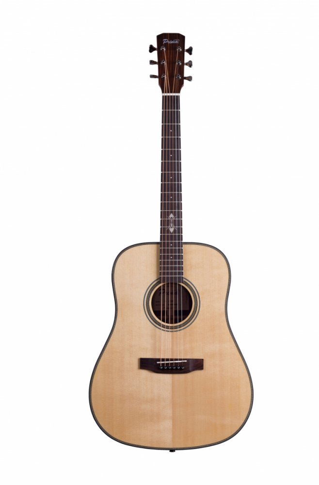 Акустическая гитара Prima DSAG218 изготавливается из отборных материалов, обеспечивающих чистое звучание с богатыми обертонами. Топ изготавливается из цельной ситхинськои ели, а корпус из палисандра Santos. Сочетание этих материалов с корпусом Dreadnought создают объемное звучание с выраженной серединой и яркими верхами. Гитара покрыта тонким слоем глянцевого лака и имеет роскошный внешний вид.