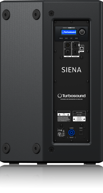 В акустических системах используются усилительные модули KLARK-TEKNIK пиковой мощностью 2500 ватт (3000 ватт для сабвуфера) и встроенным DSP, который позволяет корректировать частотную характеристику, имеет блок подавления обратной связи FBQ, может обеспечивать задержку сигнала до 300 миллисекунд и его лимитирование. Кроме аналогового балансного входа, активные системы Turbosound Siena имеют цифровой вход форматаULTRANET, позволяющие получать цифровой сигнал непосредственно с микшеров Behringer и Midas. Для обеспечения надёжного контакта в цепи питания акустических систем, имеющих высокую мощность, применяется кабель с разъёмом powerCON.