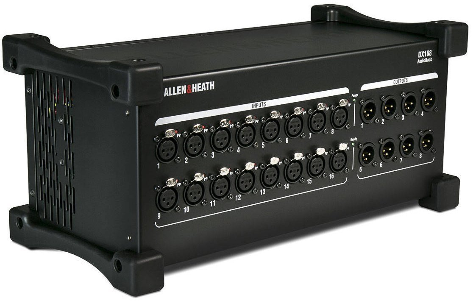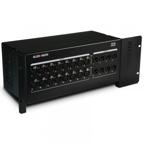 ALLEN & HEATH DX168 выполнен в довольно компактном, но прочном корпусе и имеет удобную ручку для переноски и съемные резиновые бамперы. Последние обеспечивают дополнительную защиту устройства, позволяющего размещать его непосредственно на полу сцены. Однако Allen Heath DX168 можно установить в стандартную 19-дюймовую стойку, используя дополнительный монтажный комплект.