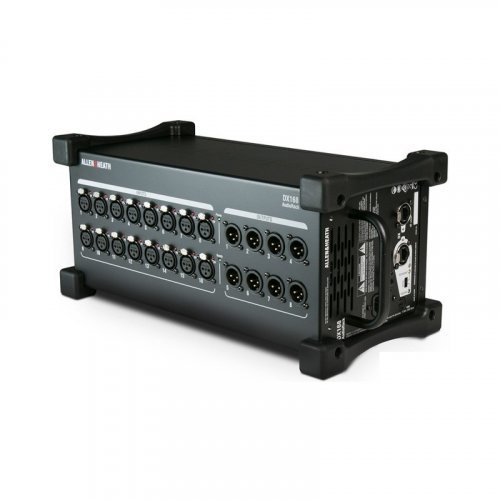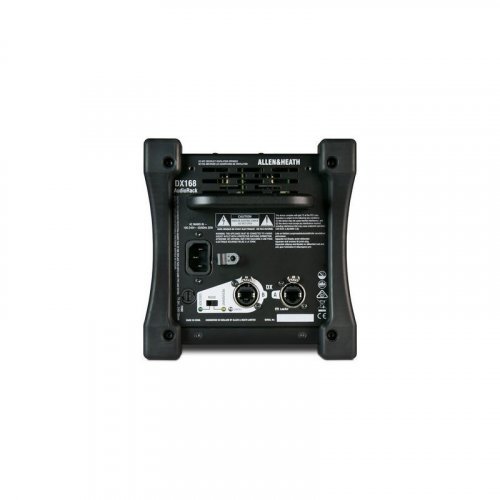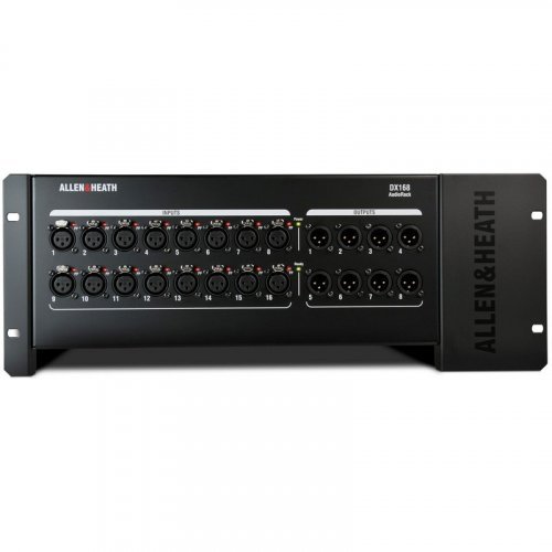 ALLEN & HEATH DX168 - это блок соединения для цифровой системы смешивания dLive, может использоваться как с системами dLive S Class, представленными позапрошлым годом, так и с новейшими системами dLive C Class. Коробка защиты ALLEN & HEATH DX168 имеет 16 микрофонных входов XLR с предусилителями и 8 линейными выходами. Каждый вход имеет отдельный светодиод фантомного питания. Устройство подключается к смесительной системы с помощью стандартного кабеля Ethernet Cat-5e (длина подключения может быть до 100 метров), в качестве резервного подключения (режим "Чрезмерное»), так и последовательного подключения двух таких модулей (режим "Каскад") поддерживаются.