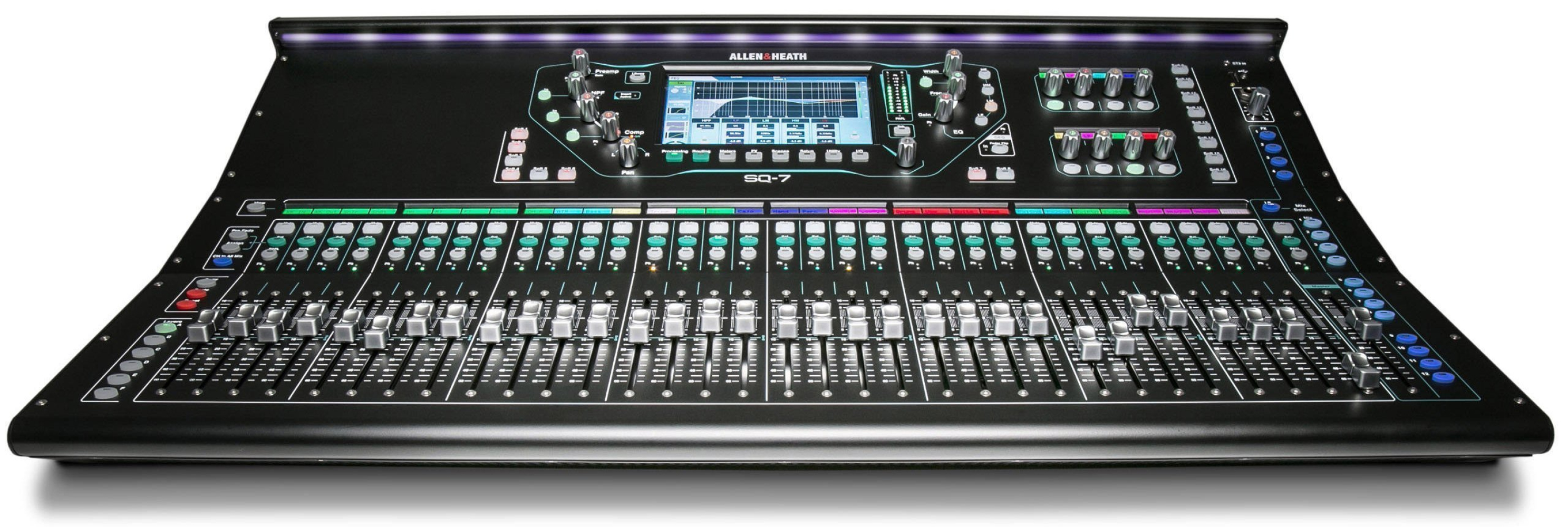 Allen Heath SQ-7 - микшерный пульт, 24 входов XLR, 8 Stereo FX Engines, 12 Стереомиксов, 33 фейдера, сенсорный дисплей, AES выход, порт SLink, запись / воспроизведение мультитреки на USB накопитель, USB интерфейс 32х32.