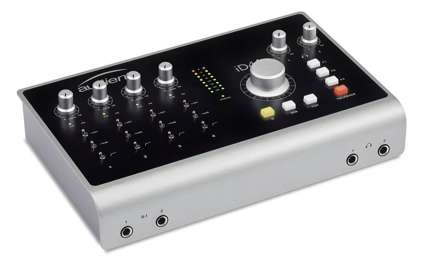 Внешняя звуковая карта Audient iD44 предназначена для использования в студии звукозаписи или в любом другом месте, например, во время поездок за счет своей портативности, не умаляют, однако, ее выдающихся технических характеристик. 4 фирменных микрофонных предусилителей класса А; высококлассные аналого-цифровые и цифро-аналоговые преобразователи; 2 высокоомных JFET входа для подключения гитар, клавиш и других инструментов; 2 сбалансированы петли посыла / возврата; 2 независимых выхода на наушники; 2 пары цифровых входов и выходов для управления интерфейсом по протоколам ADAT и SPDIF; возможность управления параметрами Вашей DAW с помощью контрольного колеса прокрутки ScrollControl, а также специальных клавиш, расположенных на передней панели устройства - все это в эргономичном металлическом корпусе аудиоинтерфейса Audient iD44.