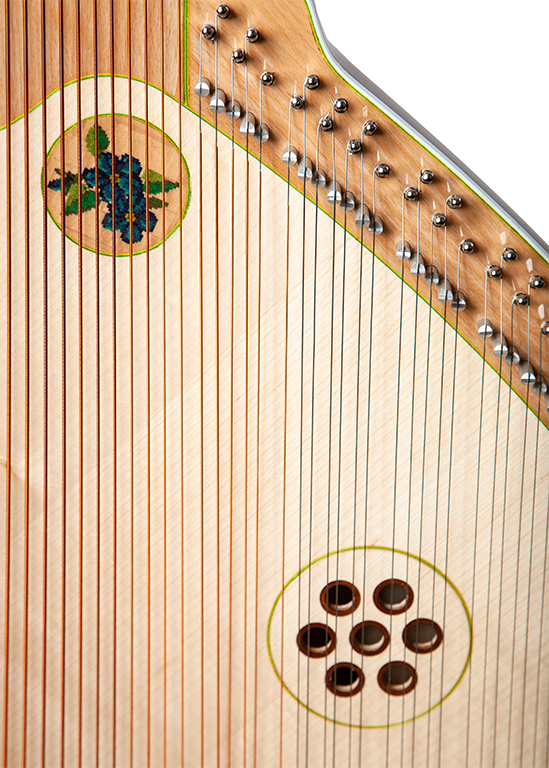 На детской бандуре установлены дополнительные верхние струны Фа, Фа#, Соль для полного Соль-мажорного звукоряда.