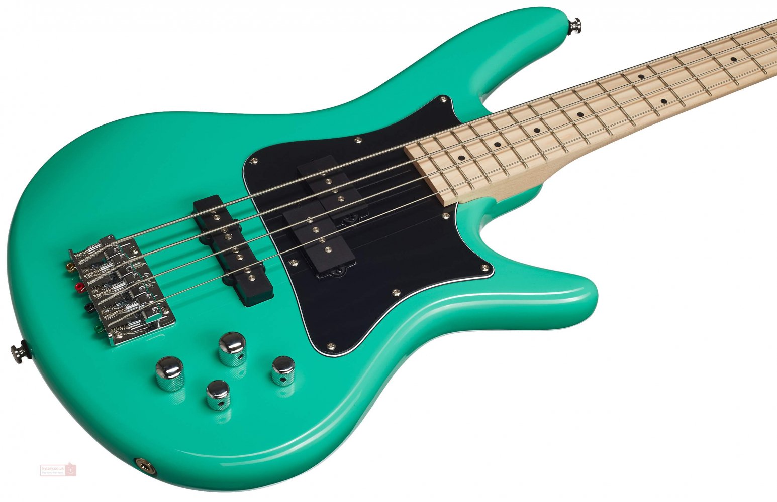 Бас-гитара IBANEZ SRMD200K AQG оснащена декой из тополя с двумя вырезами и зболченим кленовым грифом. Накладка также выполнена из клена и имеет 22 лада с инкрустацией черными точками. Характеристики включают в себя пару пассивных звукоснимателей Ibanez Dynamix, установленных в черный пикгард: DXJ в бриджевого позиции и DXP в нэковый. Синглы обеспечивают дополнительный панч.