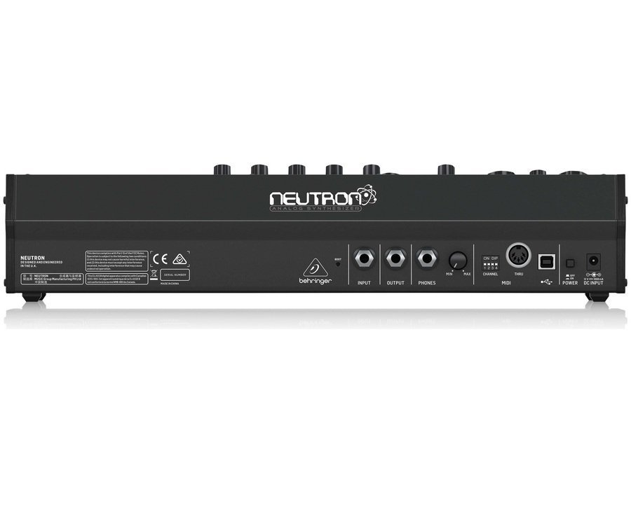 Аналоговый синтезатор Behringer Neutron не имеет собственной клавиатуры и управляется с помощью MIDI.Благодаря этому вы можете использовать клавиатуры удобного вам размера и качества, посторонние секвенсоры или контролировать синтезатор с помощью ноутбука через USB-порт.