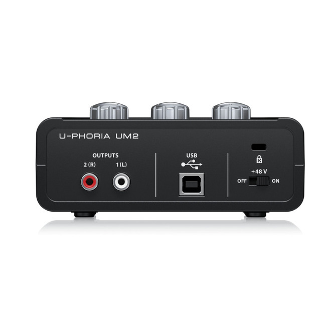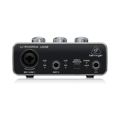 USB аудиоинтерфейс Behringer U-Phoria UM2 предлагает 2 входа и 2 выхода для работы со звуком. Устройство оснащено предусилителями Xenyx с фантомным питанием, с диапазоном 130 Дб и частотным диапазоном до 200 кГц. Вот почему UM2 гарантирует кристальную чистоту записи, как будто кто-то заменил Ваш микрофон на более дорогой.