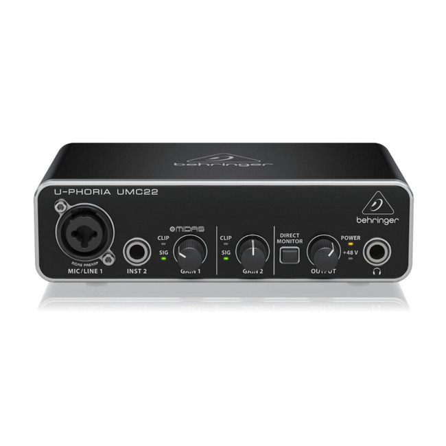 Аудиоинтерфейс Behringer U-PHORIA UMC22 спроектирован и разработан в Германии. Запись звука в стандарте 48 кГц, 2 входа, 2 выхода для микрофонов и инструментов, предварительные Midas с фантомным питанием, крепкий корпус, большой пакет программного обеспечения в комплекте.