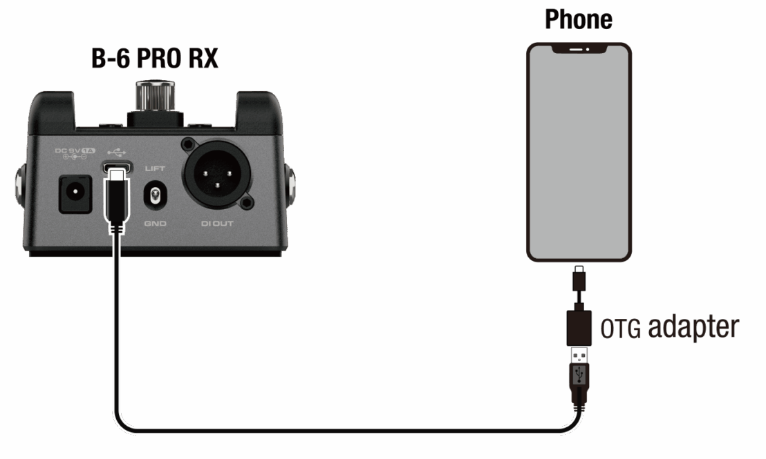 Вы можете подключить B-6 PRO к мобильному телефону через порт USB-C для цифровой записи звука.