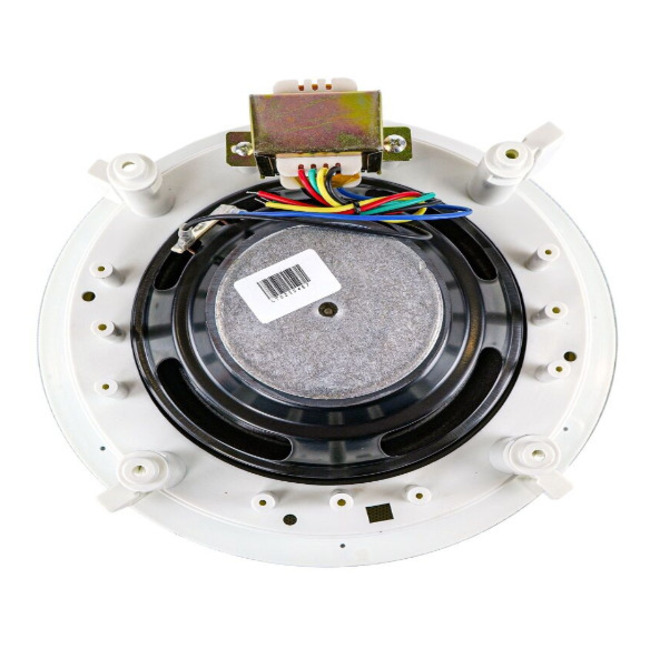CELL 620RS Пасивна трансляційна акустична система. Тип монтажу Врізна, стельова. Конфігурація 2-смугова. НЧ 6,5”. ВЧ 0,5”. Виводи трансформатора 100В 20 Вт/15 Вт/10 Вт. Опір 8 Ом. Чутливість 87 дБ. Діапазон відтворюваних частот 50 – 20 000 Гц. Матеріал корпусу АБС-пластик. Колір білий. Акустична система. Розміри 230×107 мм. Діаметр монтажного отвору 198 мм. Посадкова глибина 105 мм. Кріплення сітки на магнітах