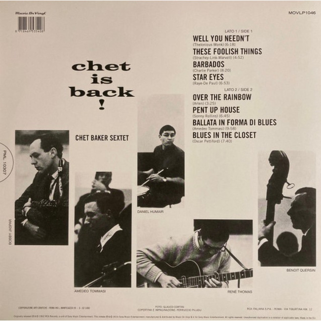 Chet Is Back! (1962) — один из знаковых альбомов Chet Baker Sextet. Переиздание 2014 года от Music On Vinyl, LP, 180g.