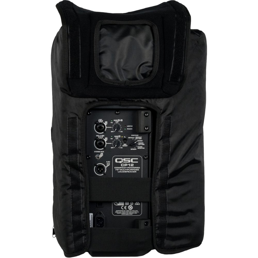 QSC CP12 Tote - чехол с уплотнителем для акустической системы QSC CP12, материал нейлон / Cordura, карманы, прочная застежка-молния, ручка для переноски.