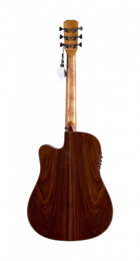 Тип - электроакустическая гитара; размер - 4/4; материал верхней деки - цельный кедр; материал корпуса - палисандр Santos; материал грифа - красное дерево; накладка на гриф - палисандр; струнодержатель - палисандр; ширина грифа в области верхнего порожка - 42,9 мм; длина мензуры - 650 мм; электроника - пьезодатчик с преампом и эквалайзером; покрытие глянцевый лак; цвет - натуральный;