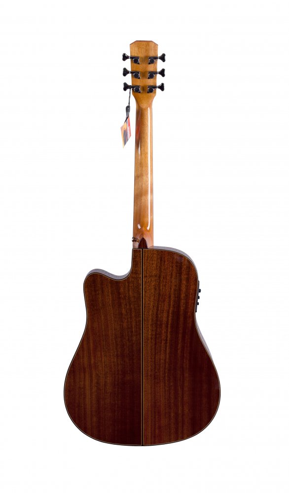 Тип - электроакустическая гитара; размер - 4/4; материал верхней деки - цельная ель; материал корпуса - красное дерево; материал грифа - красное дерево; накладка на гриф - палисандр; струнодержатель - палисандр; ширина грифа в области верхнего порожка - 42,9 мм; длина мензуры - 650 мм; электроника - пьезодатчик с преампом и тюнером; покрытие глянцевый лак; цвет - натуральный
