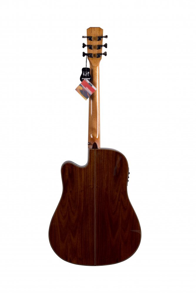 Электроакустическая гитара Prima DSAG218CEQ4 изготавливается из отборных материалов, обеспечивающих чистое звучание с богатыми обертонами. Топ изготавливается из цельной ситхинськои ели, а корпус из палисандра Santos. Сочетание этих материалов с корпусом Dreadnought создают объемное звучание с выраженной серединой и яркими верхами. Инструмент имеет вырез в области 12-го строя и оборудован активной электроникой с 3-х полосным эквалайзером и тюнером. Гитара покрыта тонким слоем глянцевого лака и имеет роскошный внешний вид.