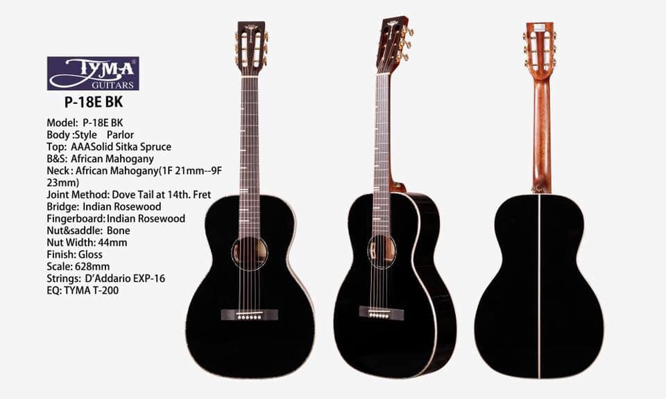 Электроакустическая гитара, тип корпуса: парлор, верхняя дека: массив ситхинской ели AAA, задняя дека и обечайки: африканское красное дерево, гриф: африканское красное дерево толщина грифа на 1 ладу 21 мм, на 9 ладу 23 мм, порожек: полифениленсульфид, ширина 44 мм, накладка на гриф: индийский палисандр, электроника: встроенный пьезодатчик TYMA T-200, покрытие: на деке глянцевое, на грифе матовое с плавным переходом в глянец в месте стыка с декой.