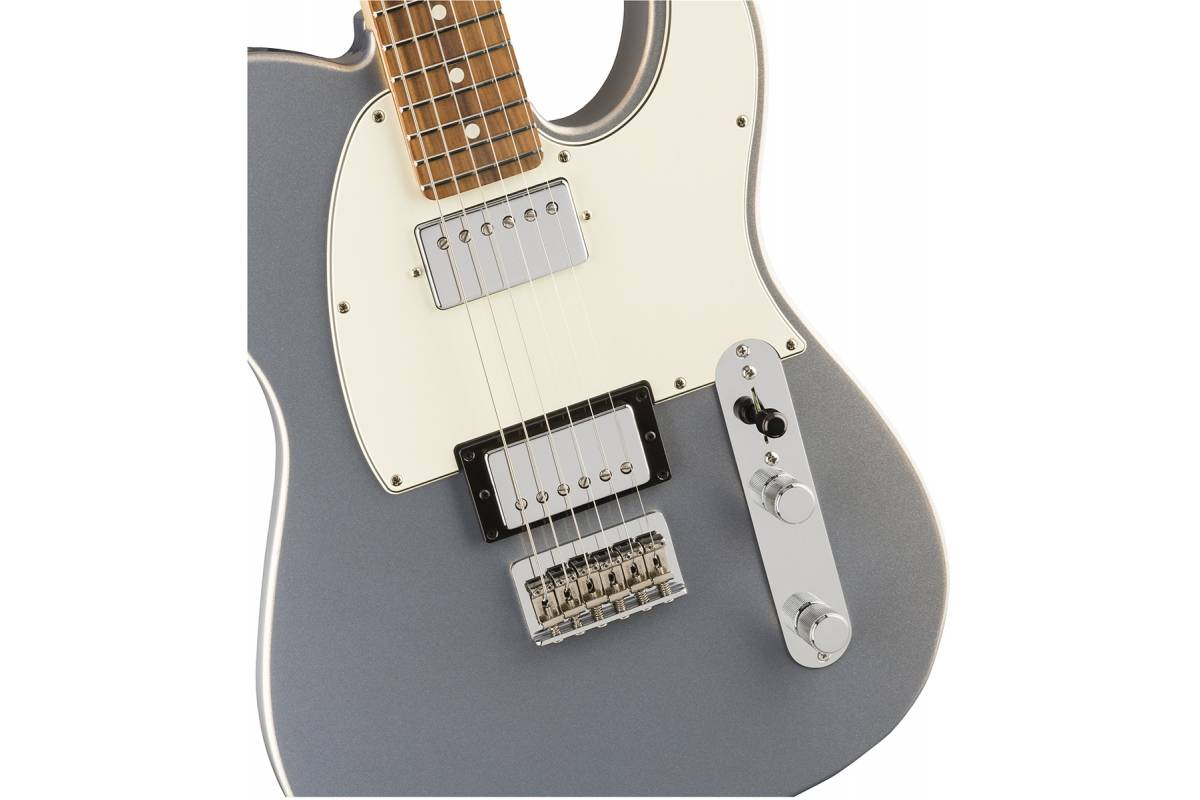 Основные особенности электрогитары FENDER PLAYER TELECASTER HH PF SILVER: Дека из ольхи с глянцевым покрытием; 2 звукоснимателя Player Series humbucking; Профиль грифа «Modern C»; Радиус накладки 9.5"; Бридж струны-сквозь-корпус с седлами из изогнутого металла (bent-steel).