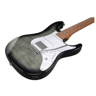 Ibanez AZ22S1F TKS – электрогитара 6 струн, серия AZ Standard, корпус – ольха с кленовым топом, гриф - печеный клен с накладкой ятоба, профиль – AZ, лады 22 Jumbo, мензура 25.5", звукосниматели (H-S-S) – Ibanez Classic Custom, тремоло-бридж – T106, хромированная фурнитура, цвет – серо-черный.