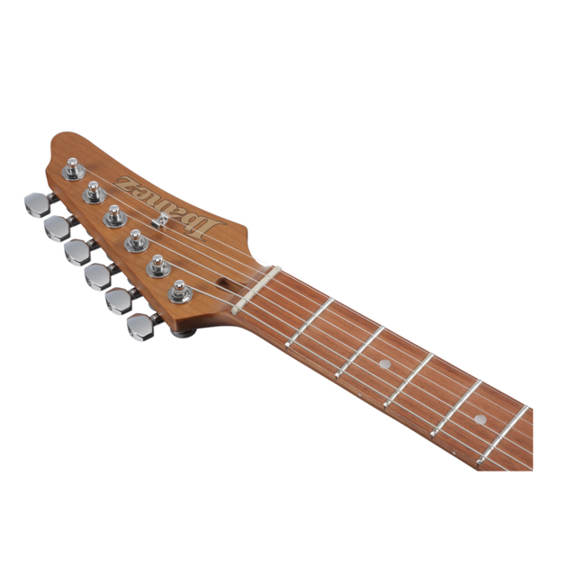 Гриф гитары выполнен из обожженного клена, прошедшего термообработку, что значительно увеличивает его стабильность, долговечность и устойчивость к перепадам температуры и влажности. На нем расположена накладка из ятобы, древесина с красивым красновато-коричневым оттенком, которая обогащает средний диапазон и придает выразительность высоким частотам.