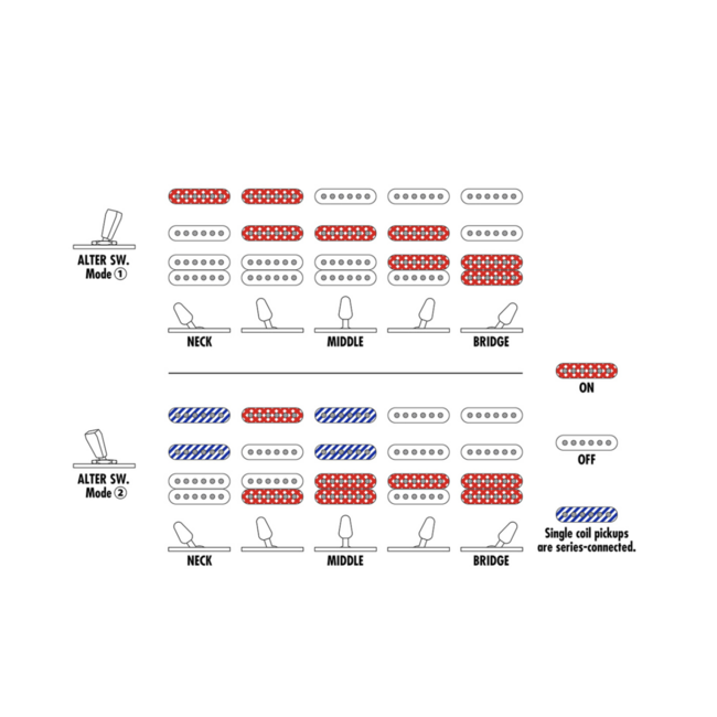 Тремоло T106 с шестью независимыми седлами позволяет точно настраивать высоту и интонацию каждой струны, а система переключения Dyna-MIX9 с мини-переключателем Alter дает возможность переключаться между девятью звуковыми вариациями, включая комбинированные режимы хамбакеров и синглов для максимальной гибкости в звуке.
