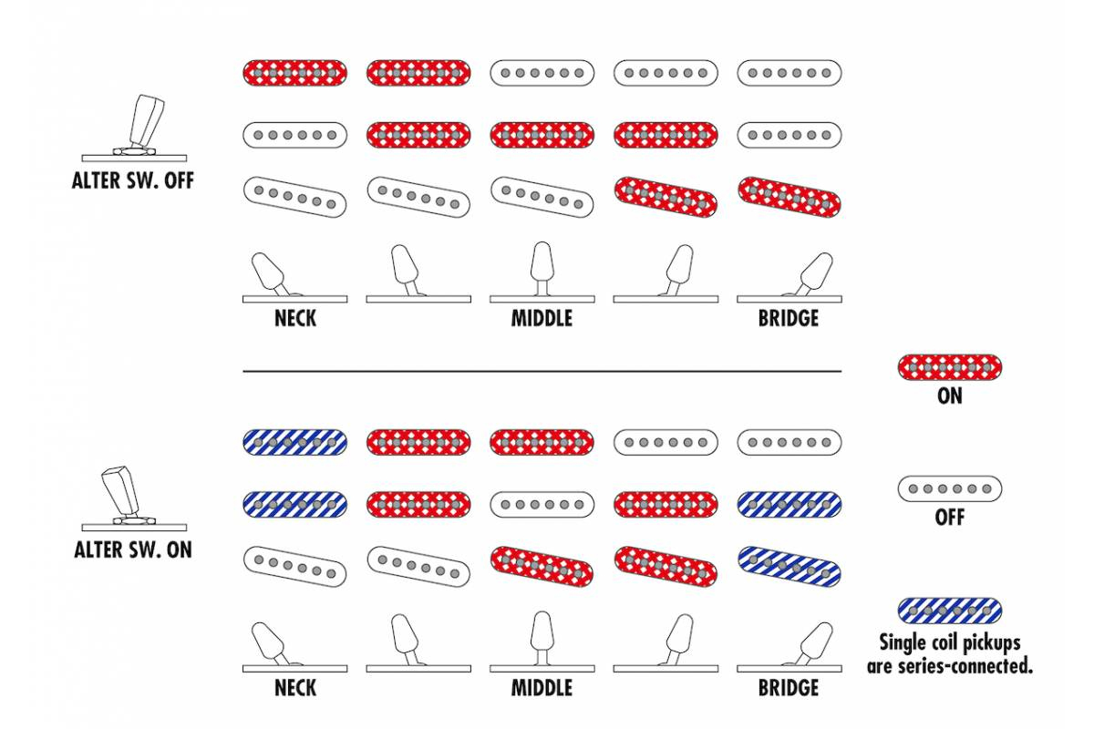 Звукосниматели Essentials обеспечивают хорошо сбалансированное звучание и универсальность, так что гитаристы могут наслаждаться разнообразными стилями музыки с помощью всего лишь одного инструмента. Система переключателей dyna-MIX 8 с переключателем Alter предоставляет восемь вариаций звука и может легко переключаться между режимами хамбакера и сингла с помощью мини-переключателя. Один режим способен даже имитировать хамбакер из конфигурации двух синглов.