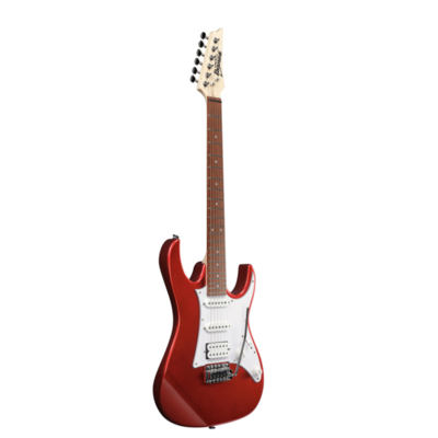 Ibanez GRX40-CA – 6-струнная электрогитара, серии RG Gio, корпус – RG, материал корпуса – тополь, гриф – клена с накладкой ятоба, профиль – GRX, радиус накладки – 305 мм, лады 22 Medium, мензура 25.5", звукосниматели (H-S-S) – Ibanez Infinity R/RS, бридж тремоло T106, хромированная фурнитура, цвет – красный (Candy Apple).