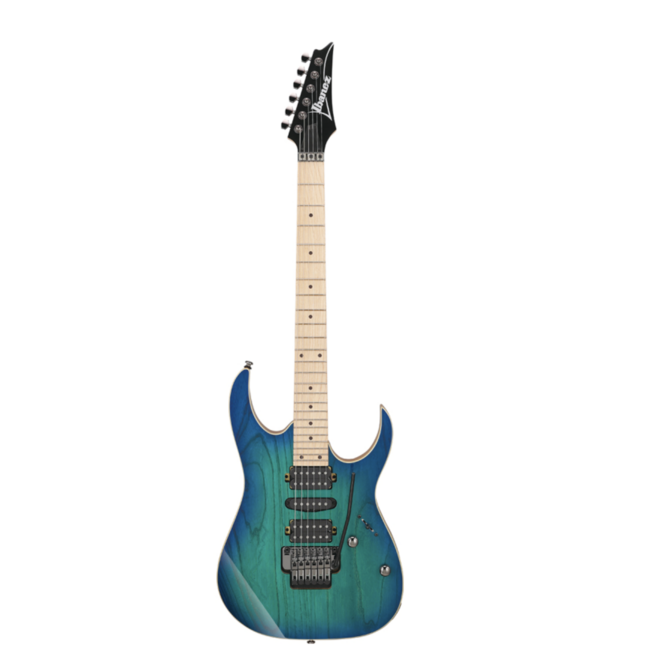 Ibanez RG470AHM BMT – электрогитара 6 струн, серия RG Standard, форма корпуса – RG, дека – ясень, гриф – клен с кленовой накладкой, профиль – Wizard III, лады 24 Jumbo, звукосниматели (HSH) – Quantum, тремоло-бридж – Edge-Zero II, цвет – синий-зеленый.